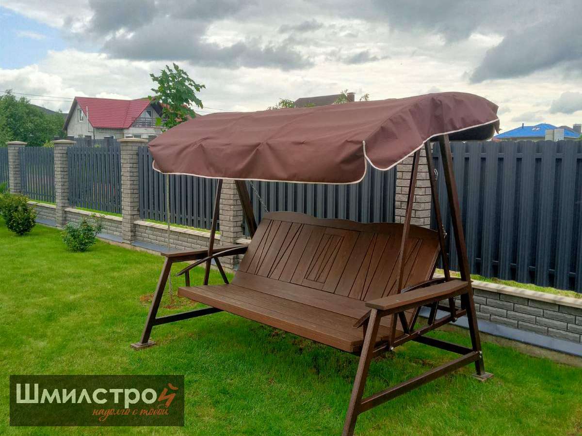 Симпатичный тент поможет сделать качели еще более уютным местом для комфортного отдыха.